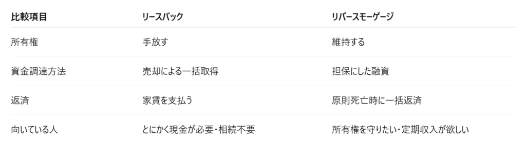 老後の資金や住まいについて考えたとき、今ある自宅を活かした資金調達法として注目されているのが「リースバック」と「リバースモーゲージ」。