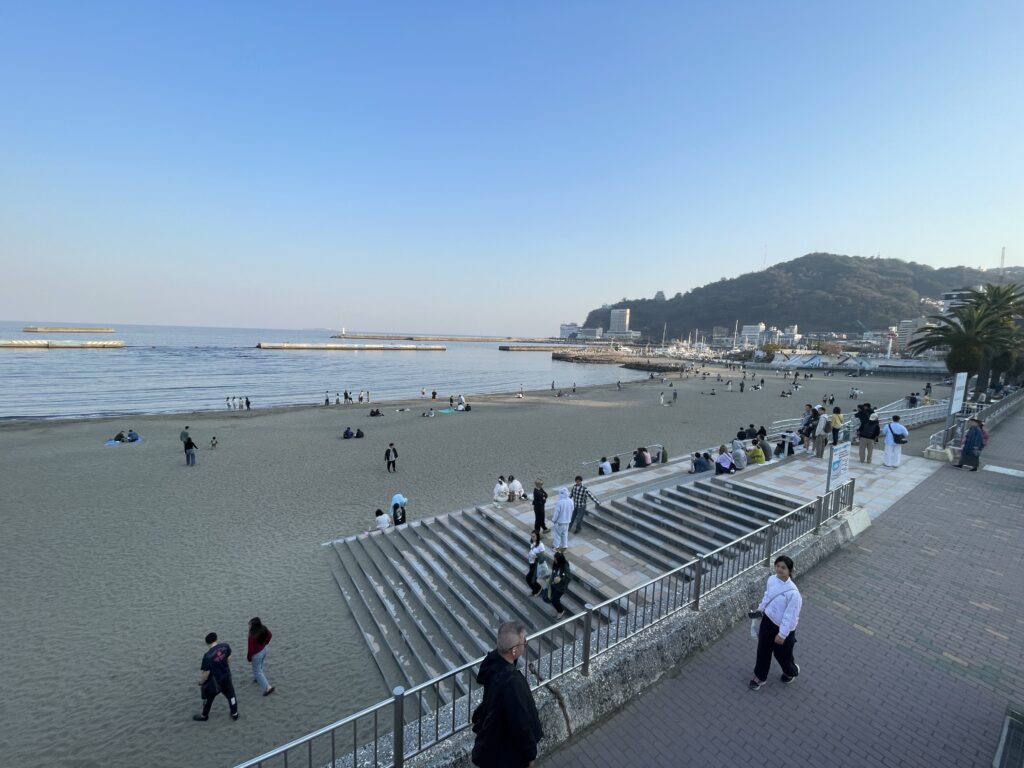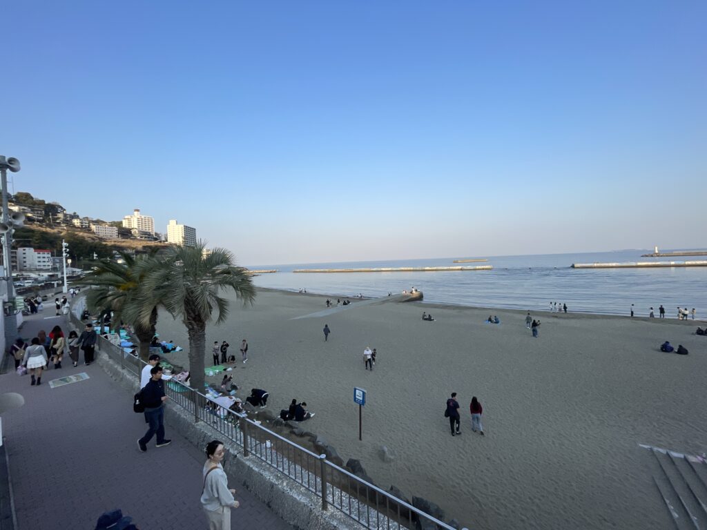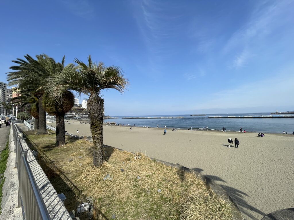 熱海駅から徒歩圏の海岸エリアには、整備された遊歩道「サンビーチ」が広がり、