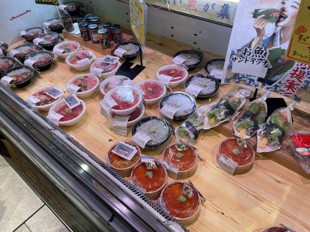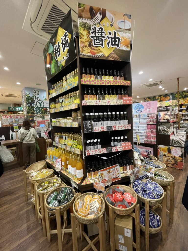 干物や温泉饅頭の老舗に加え、地元野菜の直売やセンスの良いカフェなど、