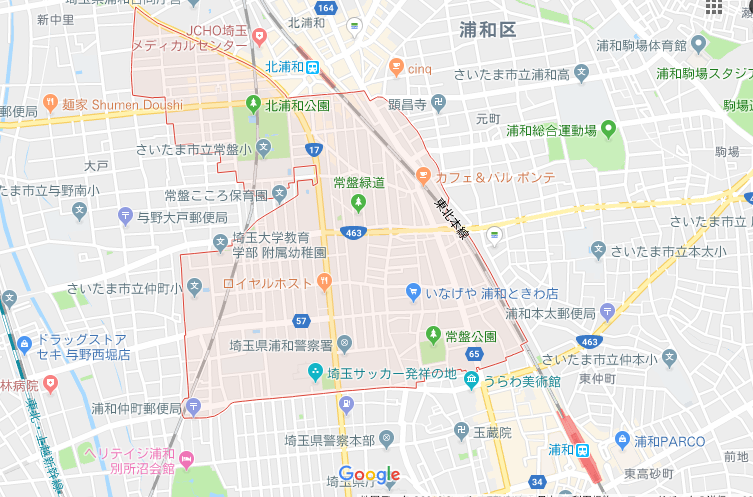 浦和駅から北浦和駅一帯に広がる浦和区常盤。